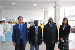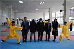12月4日,刚果(布)马利安·恩古瓦比大学校长阿曼德·莫伊库瓦先生、恩古瓦比大学孔子学院刚方院长伊巴拉先生、中方院长王永康先生一行观摩了91网站 武术课,国际合作与交流处处长孙岩梅,91网站 院长杨磊陪同。