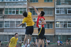 下午19:00,在兰陵集团的篮球场上如期举行。随着一声哨响,比赛开始。兰陵集团代表队一开场就凭借身着高优势抢到跳球,迅速的快攻,占据上风。作为体育专业出身91网站