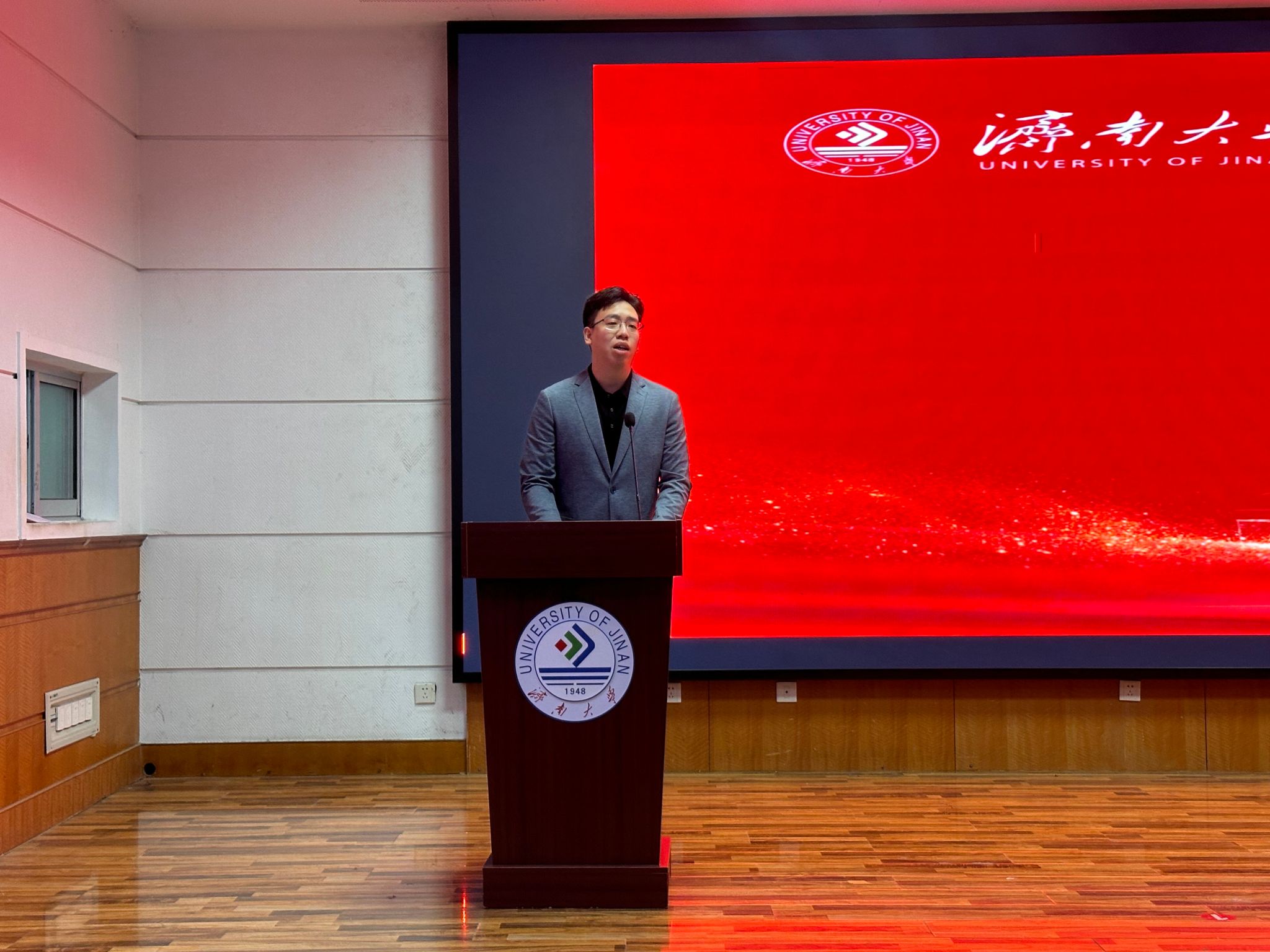 学院党委书记孙成豪发表致辞。他首先代表学院对2025级新生的到来表示热烈欢迎,并结合自身28年济大人经历,分享了见证济大从起步到壮大的历程,让新生们更直观地感受到学校的发展底蕴与体育人的使命担当。他向新生提出四点嘱托:一是坚守理想,锚定“为国争光”,将个人成长与体育强国建设紧密结合,把“为国争光”的信念融入专业学习与未来发展,以远大志向指引青春方向;二是勤学善思,筑牢本领根基,既要刻苦打磨运动技能,也要扎实学习体育理论知识,关注体育科技前沿动态,做到理论与实践相互促进,练就过硬专业本领;三是直面挑战,不惧失败挫折,体育之路难免遇到训练瓶颈、比赛失利,要学会从失败中总结经验、调整心态,把每一次挫折都转化为成长的动力,以坚韧意志攻克难关;四是珍惜资源,主动请教榜样,学院拥有优秀的师资团队、经验丰富的学长学姐与完善的训练设施,要主动向老师请教专业难题,向优秀校友、学长学习成长经验,充分利用身边资源加速自身成长,展现济大学子积极进取的风采。