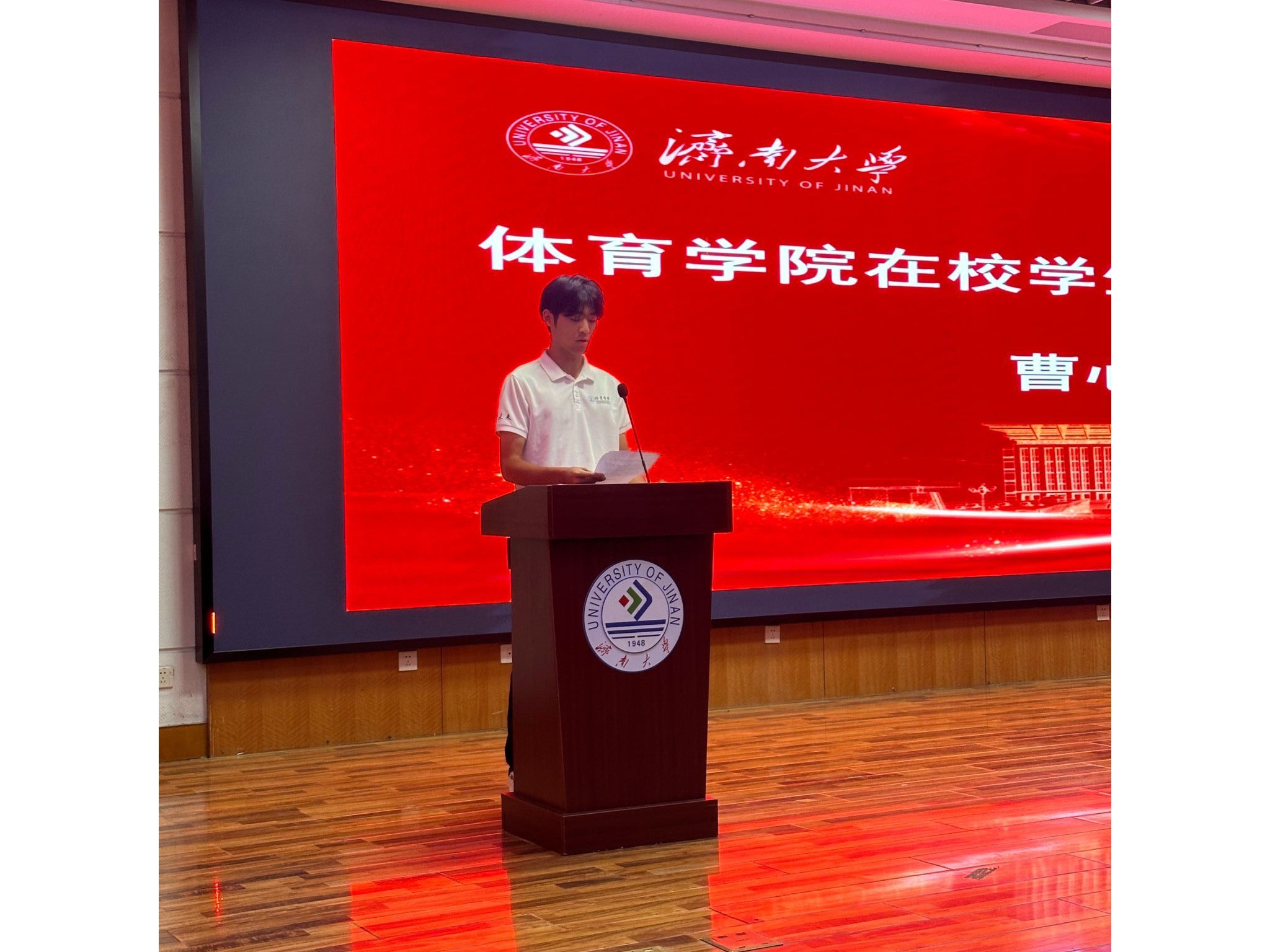 的办学优势与专业特色,帮助新生建立对母校的认知;针对体育专业学习特点,给出训练与学业平衡、融入集体生活的建议,助力新生快速适应大学生活;同时强调新生需注重创新实践、沟通协作与终身学习能力的培养,并结合国庆主题提醒大家将能力提升与体育强国建设相结合,以过硬本领扛起时代责任。
