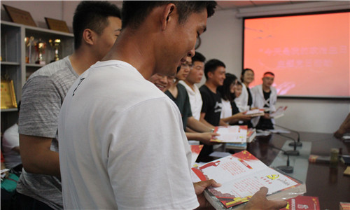 学院党委高度重视党员“政治生日”活动,活动前对6月份入党的同学进行谈心谈话,精心设计制作了政治生日贺卡,挑选了党建教育书籍作为政治生日礼物,提高学生党员对“政治生日”的认识。活动中,学院领导和老师为16名学生党员赠送了“政治生日”贺卡和学习书籍,党员同志们集体宣誓,重温入党誓词,发表生日感言,总结个人大学四年的成长历程,找差距,定方向。
