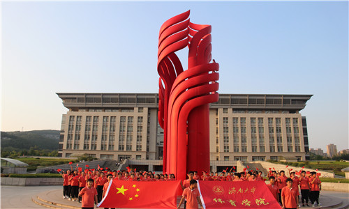 上空,歌曲的余音也久久不散,合唱人员挥舞着鲜艳的国旗,跑道红的院服与鲜红的国旗互相映衬,把济大人积极向上的风采展现的淋漓尽致。