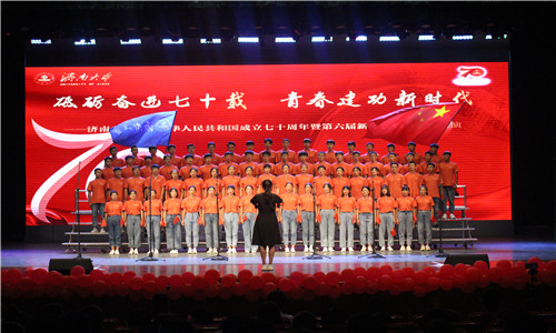 的参赛同学做了充分的准备,以积极饱满的态度投入到本次大合唱比赛的中。体院学子着整齐统一的跑道红院服,以独特的朗诵方式为接下来的合唱作序曲。在自选曲目中,他们采用分唱、合唱多种形式来演绎中华民族伟大复兴的精彩历程,他们精神饱满,以高昂的热情、嘹亮的嗓音唱出了对祖国的的热爱,对济大未来生活的憧憬,赢得了评委及现场观众的热烈掌声。最终,他们获得了此次合唱比赛三等奖的成绩。
