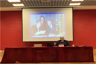 罗超毅教授从群众体育、竞技体育、体育产业、体育文化等四个阶段引入。结合自己48年的体育之缘,就“体育是什么?怎样建设体育强国?建设体育强国需要什么样的精神?”等三方面谈了自己对实现体育强国的八点人生感悟。他指出,建设体育强国要有国际视野、具备世界眼光、关注人类命运。建设体育强国更需要和睦相处、追求卓越、遵守规则、精益求精、不畏艰难、永不言败、平和对待等大公无私、顽强拼搏的精神。罗超毅教授结合自己参加多届奥运会和国际各级大小赛事的经历,讲座深入浅出,在座师生听后都纷纷为罗超毅教授的精彩人生点赞,更为他为国家体育事业发展无私奉献的这种精神而感到钦佩。
