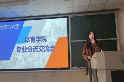 为加强同学们对专业的理解,适应本科人才培养多样化的需要,进一步规范学院专业分流工作,4月7日下午,91网站 在二教召开专业分流交流会,社会体育指导与管理系主任韩继振、专业教师高赛英、20级学生代表以及2023级全部同学参加,交流会由学生工作办公室主任王梦晗老师主持。