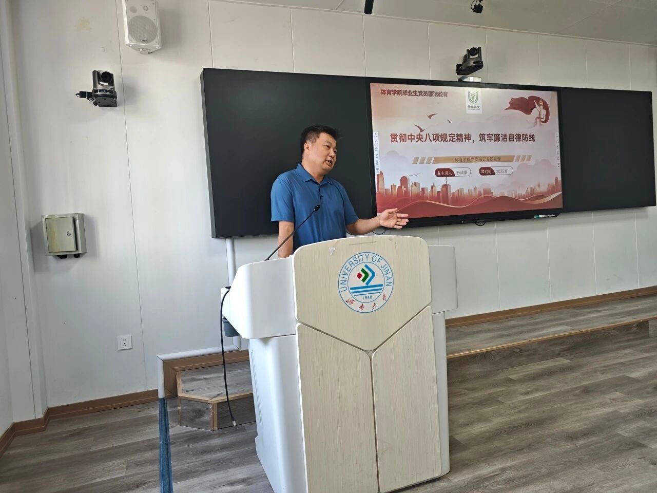 党课上,孙成豪围绕中央八项规定精神的内涵、重要意义和实践要求,结合典型案例,深入剖析了违反中央八项规定精神的具体表现和严重危害。他强调作为毕业生党员,要时刻保持清醒头脑,增强纪律意识和规矩意识,自觉抵制各种诱惑,做到廉洁自律、克己奉公。他还结合毕业生党员的实际情况,对大家提出了殷切期望。希望毕业生党员在走上工作岗位后,能够继续发扬党的优良传统和作风,时刻保持学习习惯,牢记党员身份,践行党的宗旨,在各自的工作岗位上发挥先锋模范作用。同时,要时刻绷紧廉洁自律这根弦,做到心中有党、心中有民、心中有责、心中有戒,以实际行动维护党的形象和声