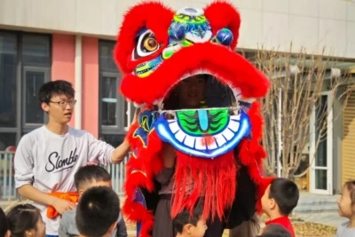 的同学们还亲自指导孩子们学习舞狮的基本动作,从简单的摆头、跳跃,到步伐的移动,每一个动作都耐心细致地讲解示范,在同学们的帮助下,有模有样地模仿起来,稚嫩的脸上写满了认真。这一刻,龙狮舞狮文化不再是书本上遥远的传说,而是化作孩子们亲身体验的快乐与传承的责任。