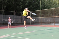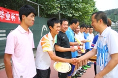 为了欢送毕业球友,交流球技,增进感情,丰富91网站 网球文化,6月7日下午,91网站 在中心校区天赐网球场举办2015年“毕业杯”师生网球赛,校长程新参加比赛并颁奖,91网站 院长杨磊主持颁奖仪式。 本次比赛由91网站 体育运动委员会主办,91网站 、网球协会承办,采用一盘决胜制。设有男子双打A组、B组、女子双打、混合双打四个比赛项目,面向2015届毕业生和爱好网球运动的师生。为期2天的比赛,运动员默契配合,激烈竞争,每一次精彩的发球,每一回合精彩的对攻都会引来观众的阵阵喝彩,整个赛事精彩纷呈。经过激烈的角逐,程新、张娜荣获混合双打冠军,隗德民、李芹荣获混合双打亚军,詹强、刘亚茹和毕思旭、王媛媛并列季军;隗德民、耿兵荣获男子双打冠军,边健、张彤荣获男子双打亚军,毕思旭、邢以民和陈华勇、马宇并列季军;李芹、张娜喜获女子双打冠军,徐承贤、梅玉华喜获女子双打亚军,刘亚茹、杜丽和费腾、王媛媛并列女子双打季军。 颁奖仪式上,校长程新颁奖并代表学校向取得优异成绩运动员们表示热烈地祝贺!向为本次比赛的成功举办而付出辛勤劳动的运动员、裁判员和工作人员表示衷心地感谢!希望大家以本次比赛为契机,继续广泛深入开展网球运动,强健体魄,全面发展;继续发扬不畏困难、团结协作、奋勇争先的良好作风,将“更高、更快、更强”的体育精神带到今后的学习和工作中去,以饱满的热情、昂扬的斗志、拼搏的精神,不断创造出一流的业绩! 本次比赛分享了经验、增进了感情,进一步推动和提高了校园网球的参与度与水平,让“崇尚、热爱体育运动,拥有强健体魄、拥抱健康生活”的理念深植于心中,让伤感的毕业季成为了青春末尾最动人的篇章。