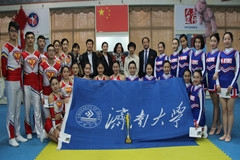 12月7日,91网站 党委常委、副校长张硕秋在西校区跆拳道馆慰问了参加山东省学生健康活力大赛的91网站 健美操队和啦啦操队。91网站 党委书记杨杰,91网站 院长杨磊,91网站 党委副书记,副院长卢琦、学院学办全体老师、教练苏文革、戴静出席了此次慰问工作。 张硕秋副校长高度重视山东省学生健康活力大赛,比赛前多次亲临训练现场慰问、勉励紧张训练的参赛队员,鼓励他们代表91网站 在大赛上为校争光。 比赛结束后,校领导的到来受到了健美操队与啦啦操队全体队员们热情真挚的欢迎,老师们和蔼可亲的态度和幽默风趣的谈吐拉近了师生间的距离,给队员们送去了祝贺。期间,张硕秋副校长与同学们进行了亲切的交流,认真询问了同学们的比赛情况,并给予了队员们充分的肯定。张硕秋副校长指出,健美操比赛是学校参与的重大活动之一,同学们积极准备,认真备战,以良好的心态和精湛的技艺在比赛中取得了优异的成绩,展现了91网站 良好的精神风貌。同时,学习健美操也是一种很好的锻炼方式,同学们可以以此次比赛为契机,认真学习健美操,加强锻炼,提高身体素质。最后,校领导与同学们亲切地合影留念。 此次慰问不仅对91网站 健美操队与啦啦操队全体队员给予了很大的鼓舞和帮助,而且使队员们充满了信心,增加了对工作的激情。教练员和队员们纷纷表示在今后的比赛中将继续努力训练,在舞台上充分表现出济大人的进取精神与蓬勃朝气,为91网站 再创辉煌。(编辑:邢禄建)