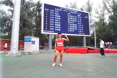 图11:房高飞同学获得男子乙组400m栏第四名