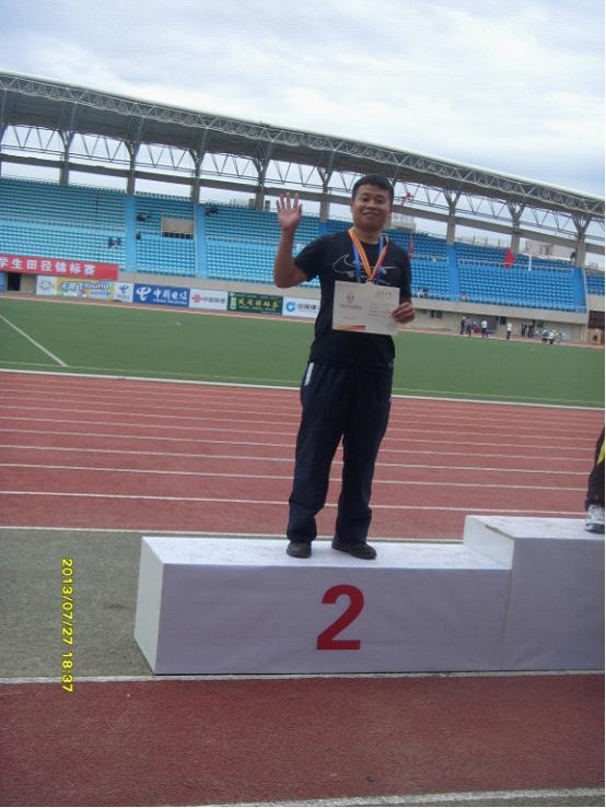 十三、蒋琦同学获得男子乙组标枪银牌,教练员单红军老师(外聘)