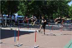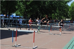 乙组男子110米栏在田径场展开激烈的决赛角逐。